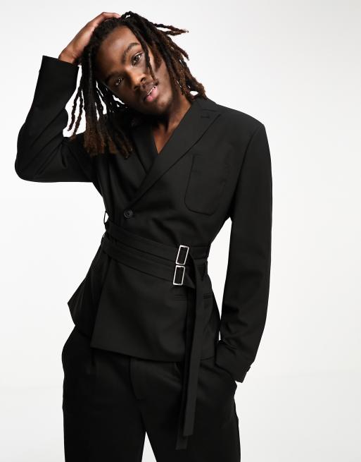 ASOS DESIGN - Blazer ajusté à double ceinture - Noir