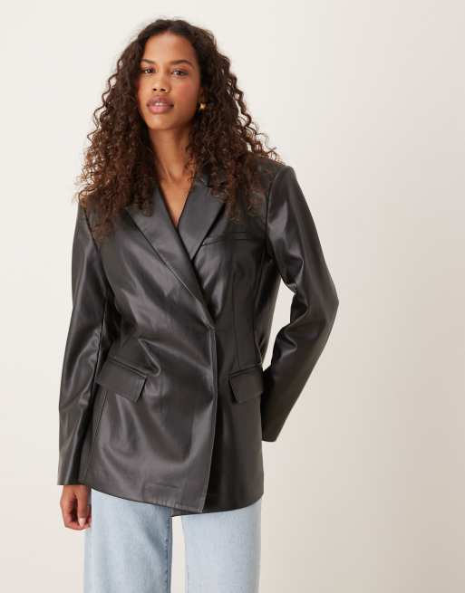 ASOS DESIGN - Blazer ajusté décontracté en similicuir - Noir