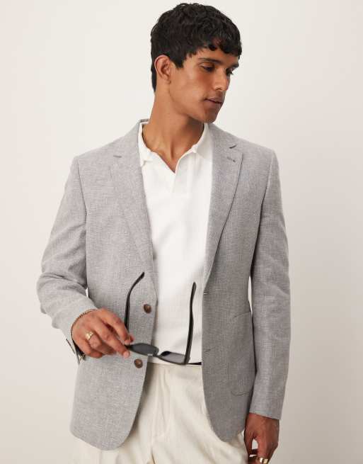 ASOS DESIGN - Blazer ajusté en lin mélangé - Gris