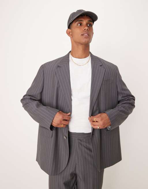 ASOS DESIGN - Blazer fluide oversize - Anthracite à fines rayures