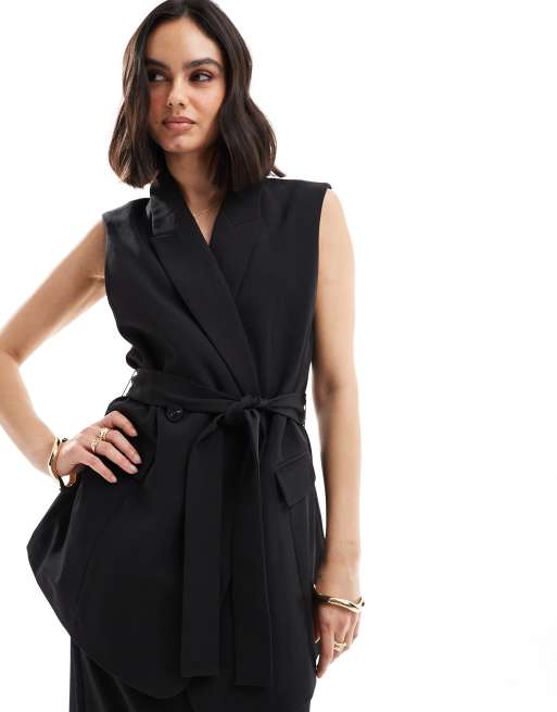 ASOS DESIGN - Blazer noué sans manches - Noir