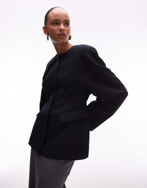 ASOS DESIGN - Blazer sculpté sans col - Bleu marine