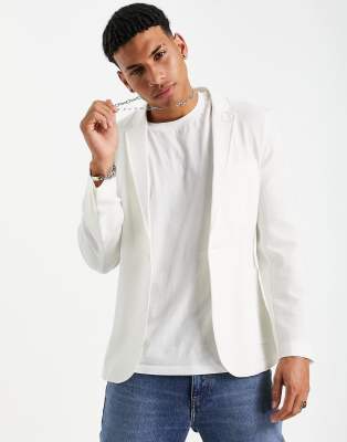 ASOS DESIGN - Blazer ultra ajusté en crépon doux au toucher - Blanc