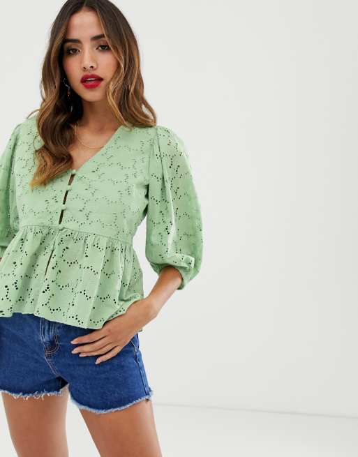 ASOS DESIGN - Blouse brodée à manches bouffantes