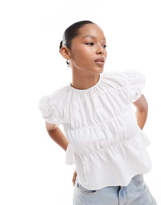 ASOS DESIGN - Blouse froncée en popeline - Écru