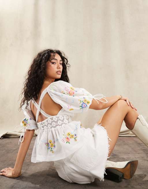 ASOS DESIGN - Blouse rétro en dentelle brodée - Blanc