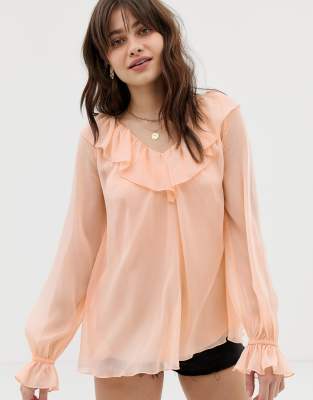 ASOS DESIGN - Blouse transparente à manches longues avec volants et caraco