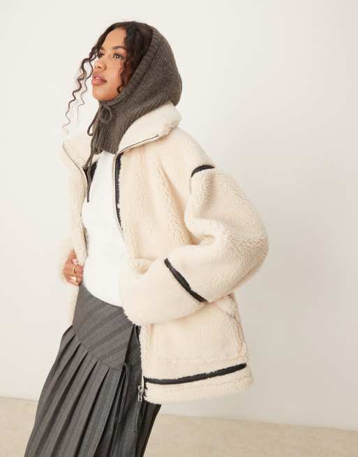 ASOS DESIGN - Blouson aviateur avec extérieur en imitation peau de mouton - Crème