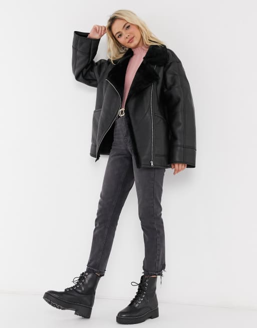 ASOS DESIGN - Blouson aviateur imitation peau de mouton - Noir