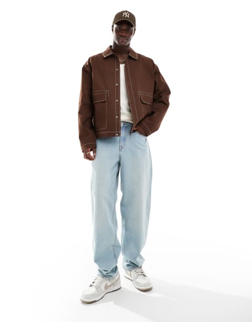 ASOS DESIGN - Blouson Harrington à coutures contrastantes - Marron