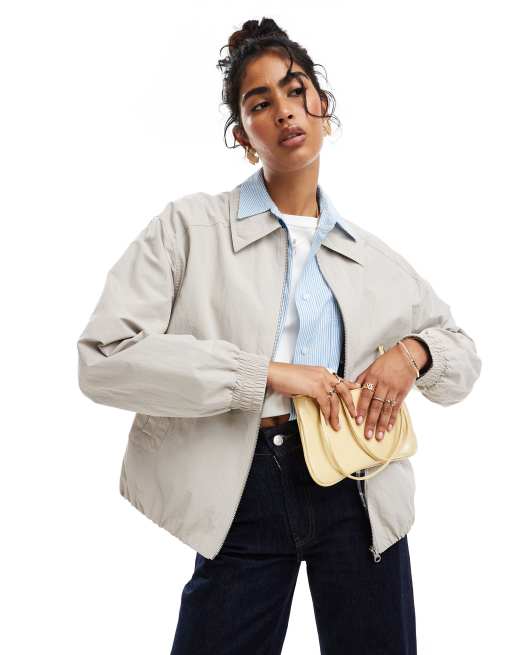 ASOS DESIGN - Blouson harrington doublé à carreaux - Taupe