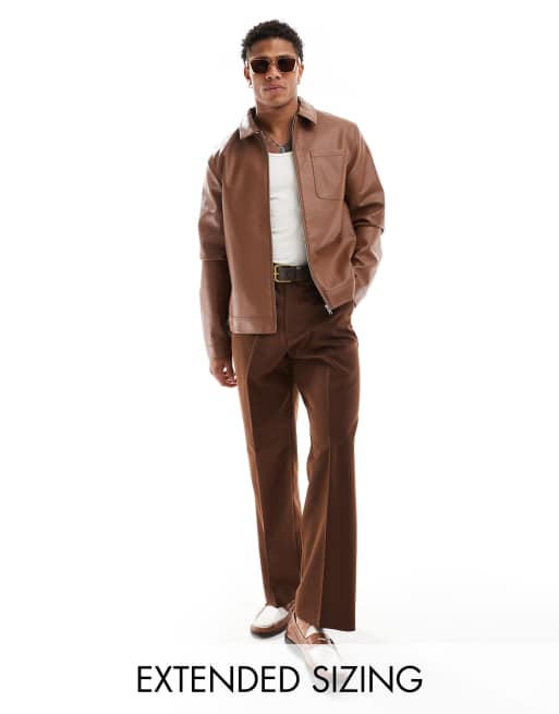 ASOS DESIGN - Blouson Harrington en imitation cuir - Fauve