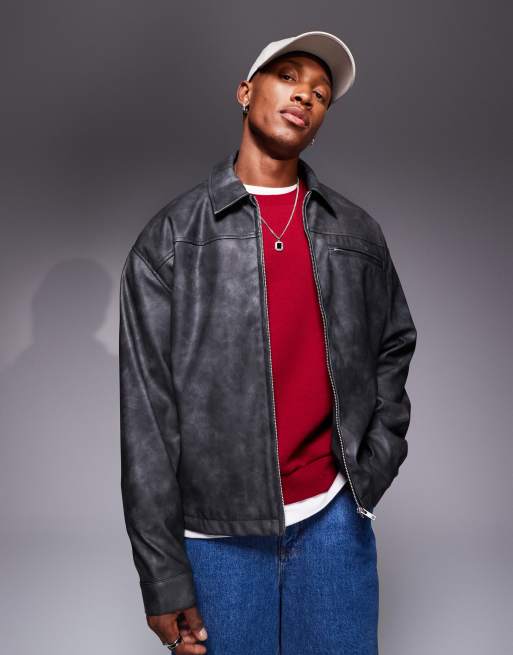 ASOS DESIGN - Blouson Harrington en similicuir - Noir délavé