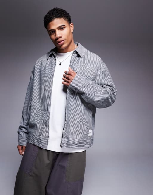ASOS DESIGN - Blouson Harrington oversize à rayures - Noir et blanc