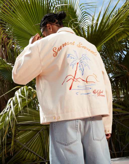 ASOS DESIGN - Blouson Harrington oversize avec broderies - Écru
