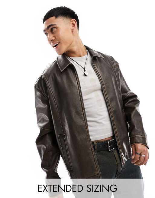 ASOS DESIGN - Blouson Harrington oversize en similicuir - Marron