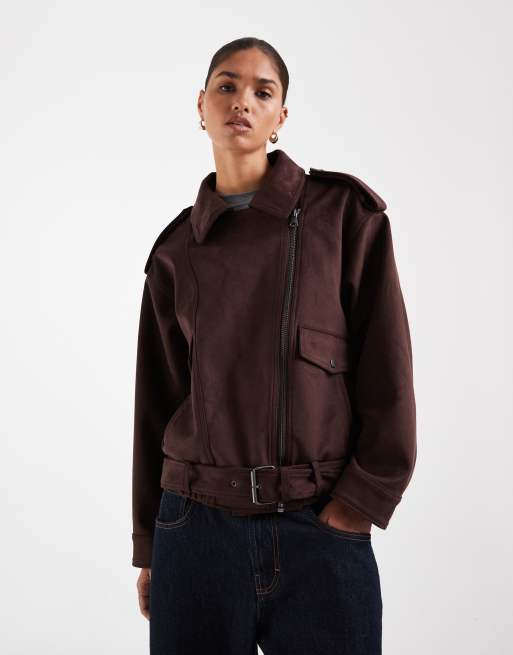 ASOS DESIGN - Blouson style motard en imitation suédine - Chocolat