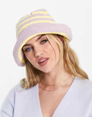 ASOS DESIGN - Bob en maille au crochet rayé - Lilas et citron