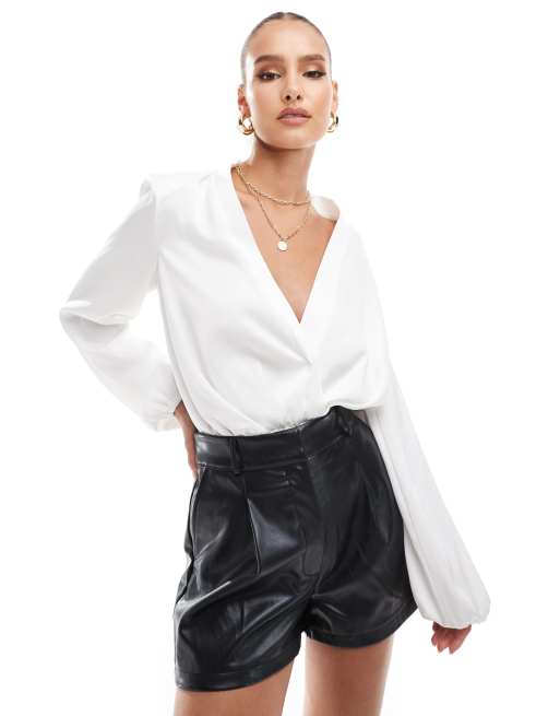 ASOS DESIGN - Body à épaulettes et décolleté plongeant - Crème