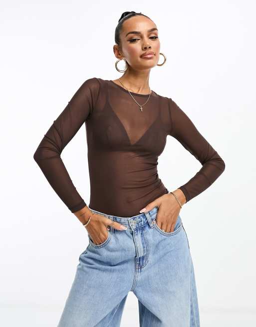 ASOS DESIGN - Body en tulle - Chocolat