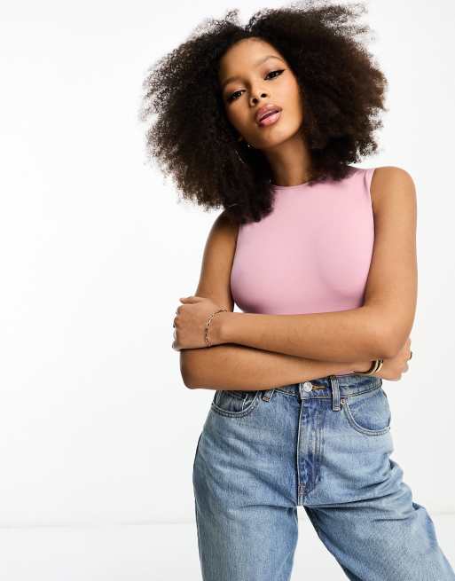 ASOS DESIGN - Body ras de cou sans coutures et sans manches - Rose