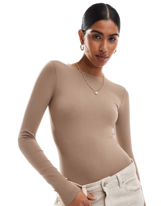 ASOS DESIGN - Body sans coutures effet sculptant à manches longues et col ras de cou - Moka