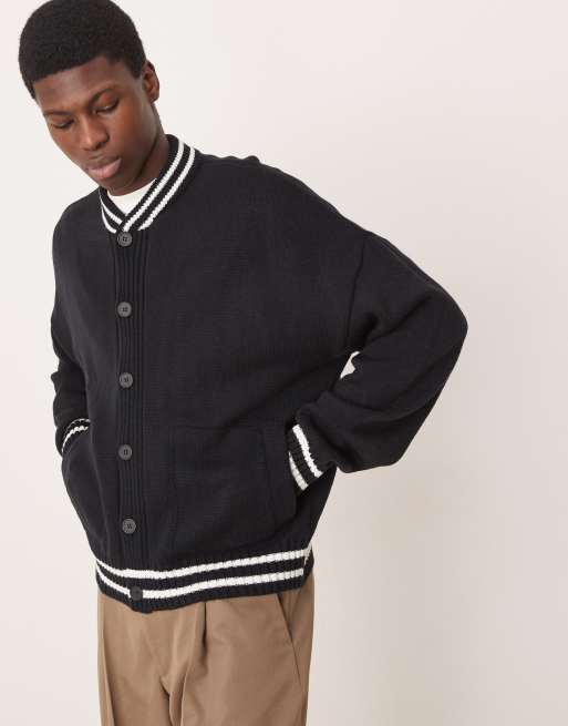 ASOS DESIGN - Bomber coupe carrée oversize en maille avec liserés - Bleu marine/blanc