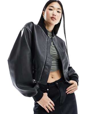 ASOS DESIGN - Bomber court en similicuir - Noir délavé