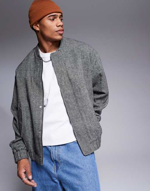 ASOS DESIGN - Bomber oversize aspect laine à chevrons - Noir