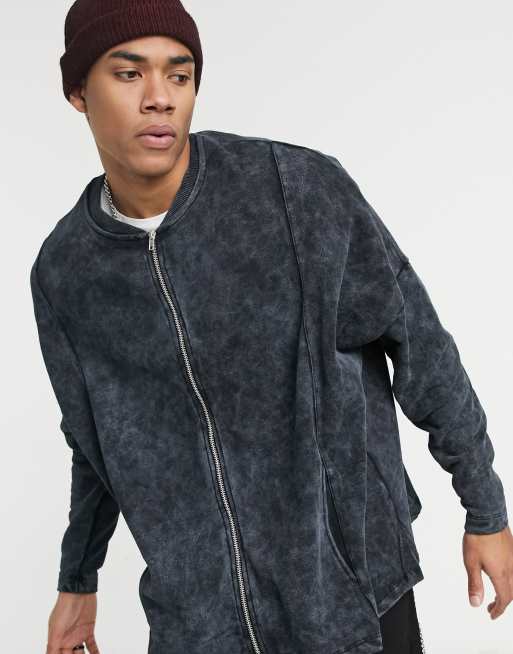ASOS DESIGN - Bomber oversize en jersey avec empiècements et ourlet oblong - Noir délavé