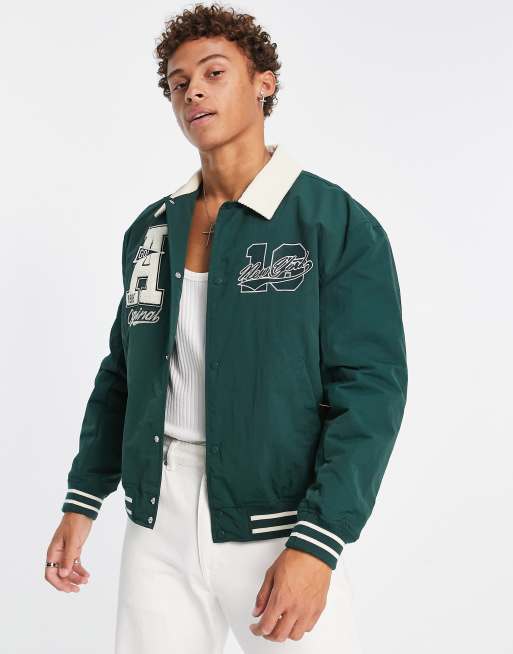 ASOS DESIGN - Bomber universitaire avec col contrastant en velours côtelé - Vert