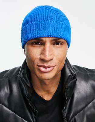 ASOS DESIGN - Bonnet à côtes anglaises - Bleu