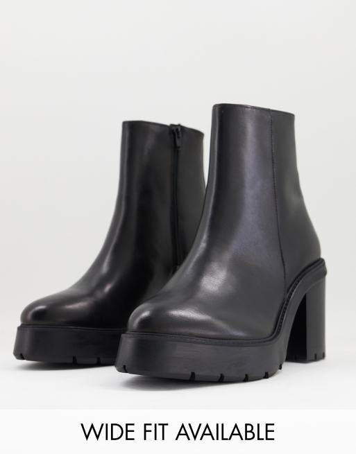 ASOS DESIGN - Bottes Chelsea à talons avec semelle plateforme en cuir - Noir