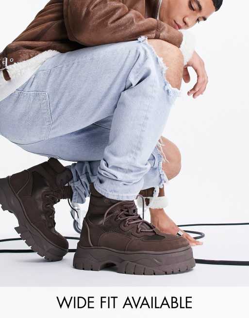 ASOS DESIGN - Bottes en daim synthétique à lacets et semelle chunky - Marron