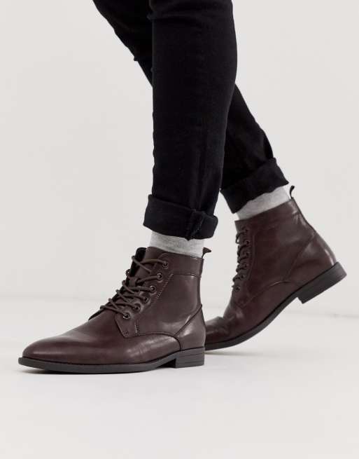 ASOS DESIGN - Bottines à lacets en similicuir - Marron - BROWN