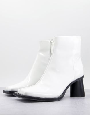 ASOS DESIGN - Bottines à talon en similicuir avec semelle contrastante - Blanc verni