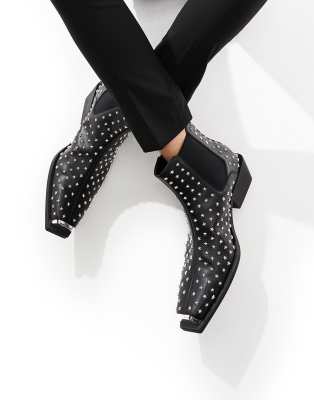 ASOS DESIGN - Bottines chelsea à talon avec clous sur l'ensemble - Noir