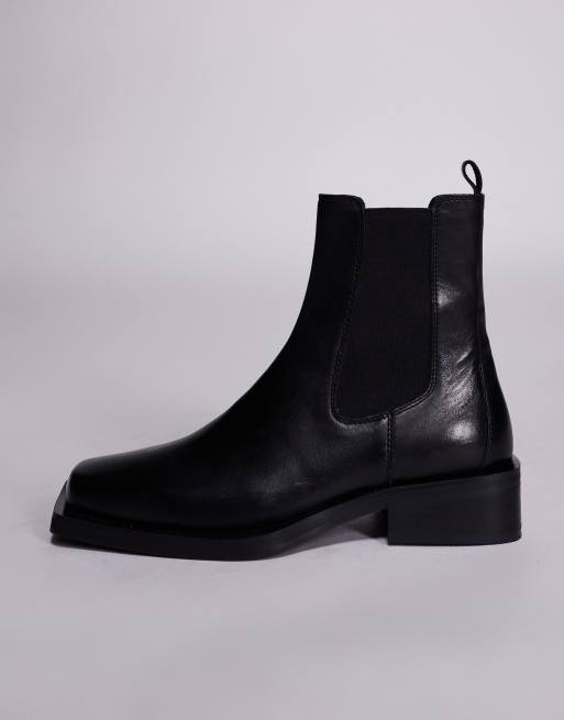 ASOS DESIGN - Bottines Chelsea en cuir à bout carré - Noir