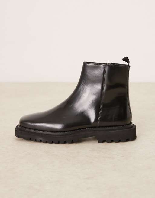ASOS DESIGN - Bottines Chelsea en cuir ultra-brillant - Noir