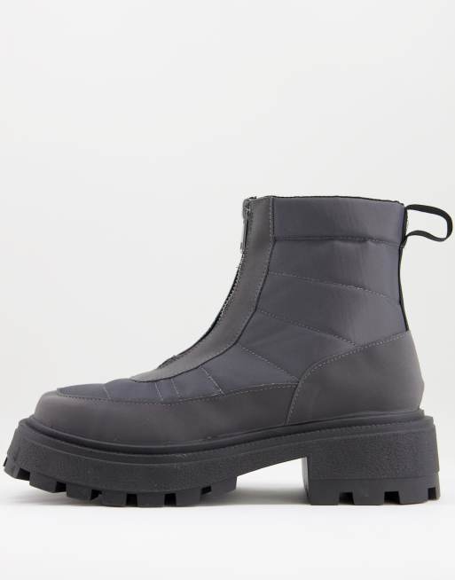 ASOS DESIGN - Bottines chelsea matelassées ultra chunky en nylon à bout carré et détail zippé - Gris