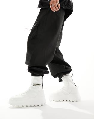 ASOS DESIGN - Bottines souples chunky zippées avec détail style motard - Blanc