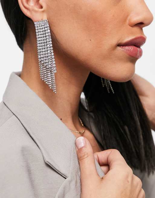 ASOS DESIGN - Boucles d'oreilles à pendant orné de cristaux effet cascade - Argenté