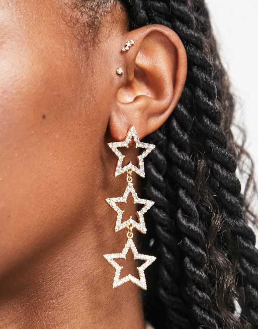 ASOS DESIGN - Boucles d'oreilles avec pendants étoiles multiple à strass - Doré