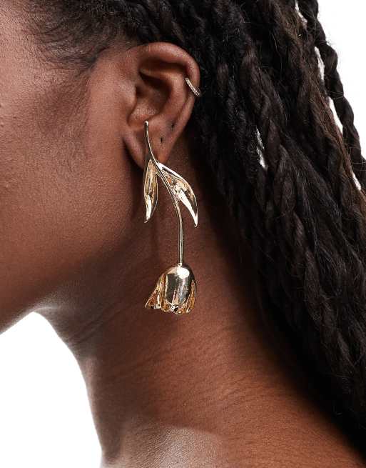 ASOS DESIGN - Boucles d'oreilles pendantes à détail rose - Doré