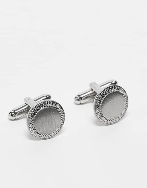ASOS DESIGN - Boutons de manchette ronds avec détail sur la bordure - Argent brossé