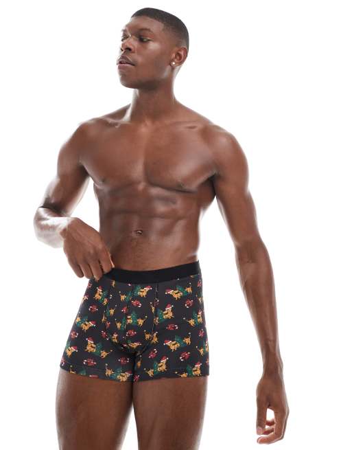 ASOS DESIGN - Boxer avec imprimé teckels de Noël - Noir
