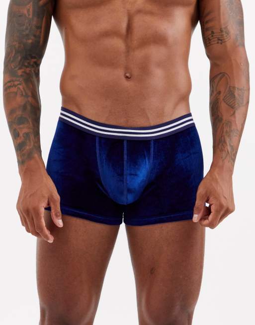 ASOS DESIGN - Boxer en velours avec taille à rayures bleu marine et blanches - Bleu marine