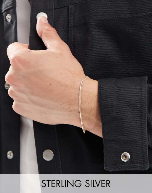 ASOS DESIGN - Bracelet à maillons plats en argent massif - Argenté/doré