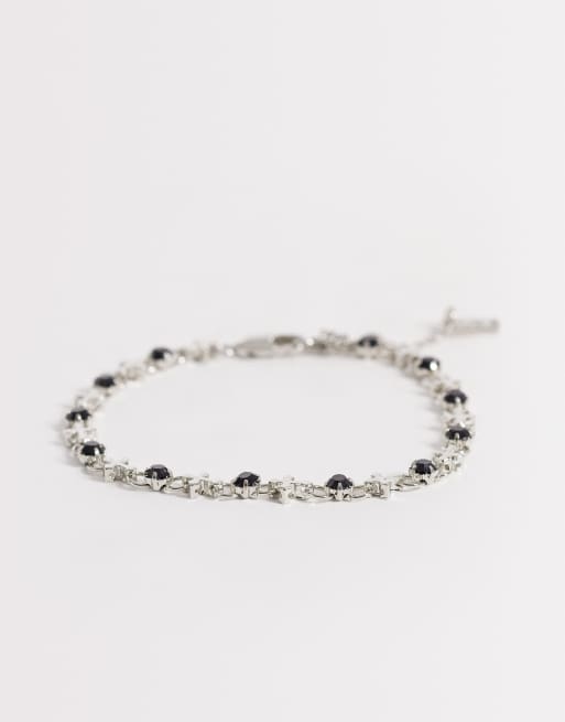 ASOS DESIGN - Bracelet chaîne à pierres noires et croix - Argenté