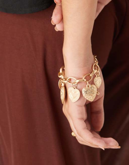ASOS DESIGN - Bracelet chaîne avec breloques cœur - Doré